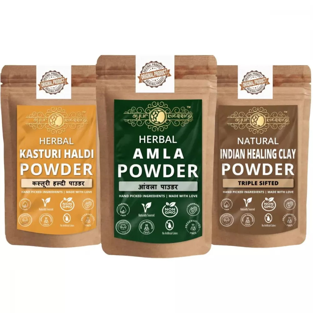 Ayur Blessing Herbal Amla & Kasturi Haldi & Indian Healing Clay Powder Combo