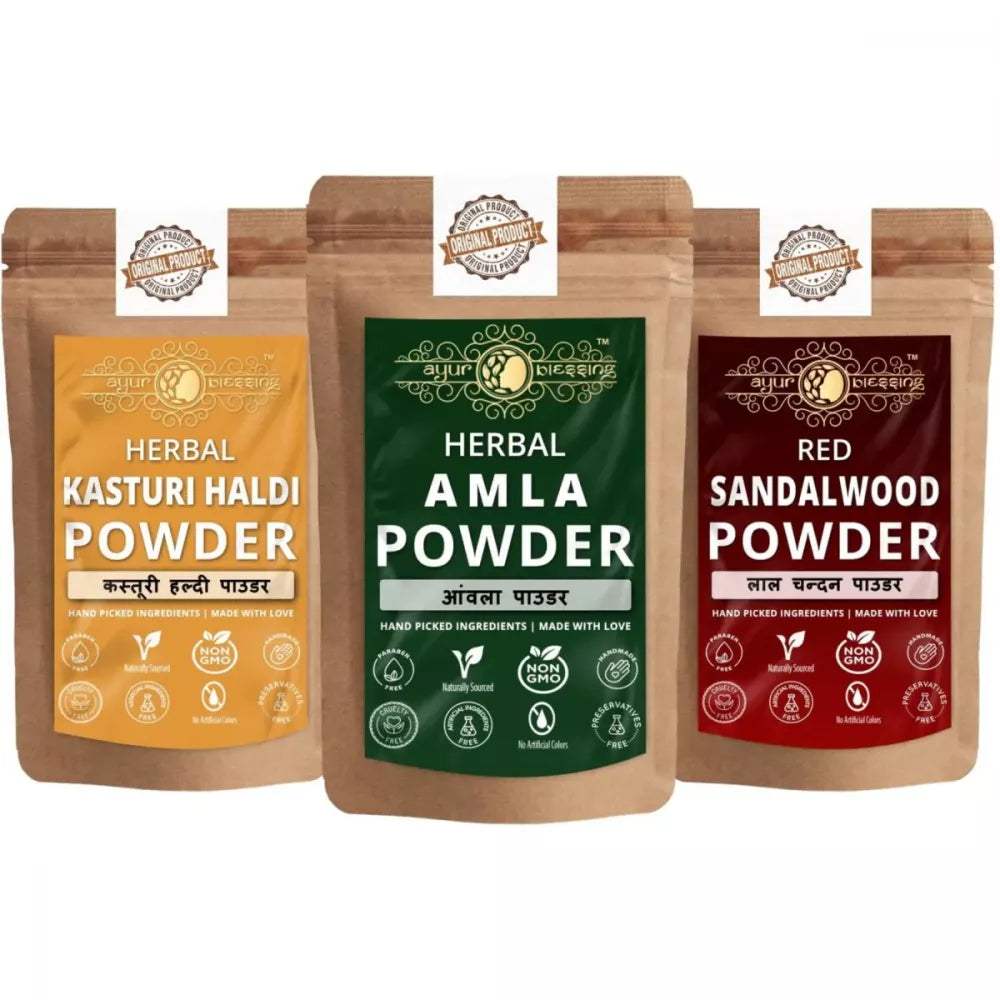 Ayur Blessing Herbal Amla & Kasturi Haldi & Red Sandalwood Powder Combo