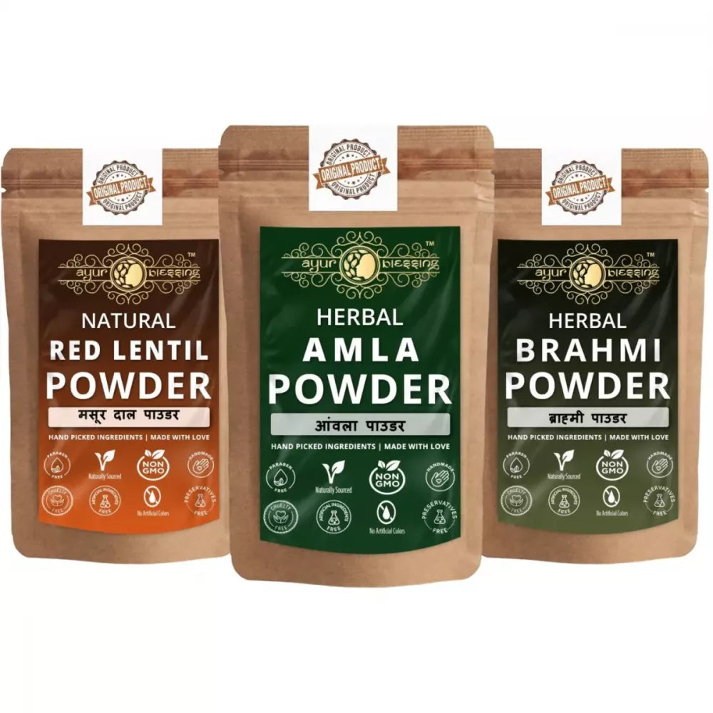 Ayur Blessing Herbal Amla & Red Lentil & Brahmi Powder Combo