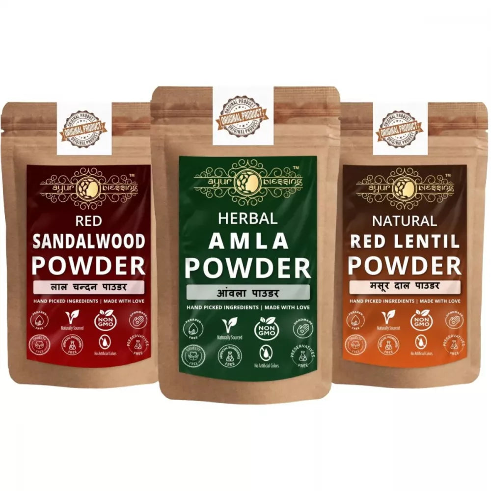 Ayur Blessing Herbal Amla & Red Sandalwood & Red Lentil Powder Combo