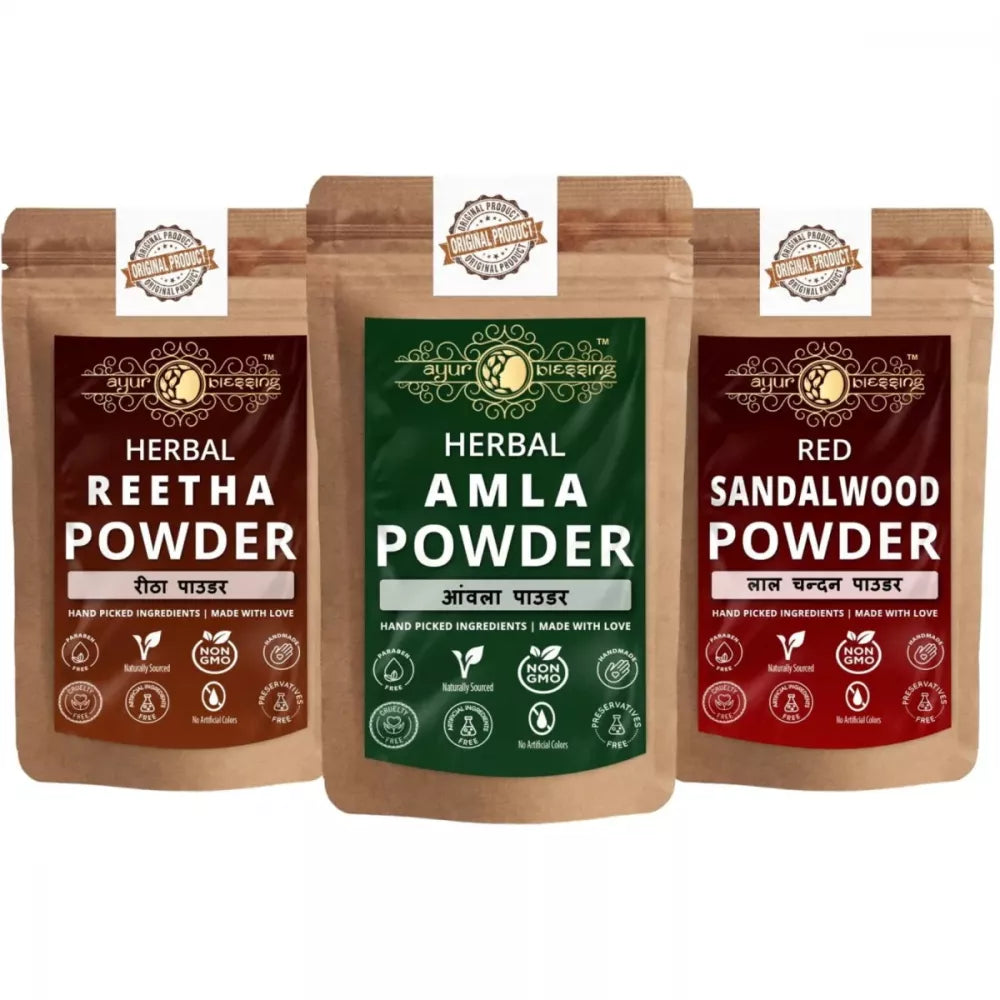 Ayur Blessing Herbal Amla & Reetha & Red Sandalwood Powder Combo