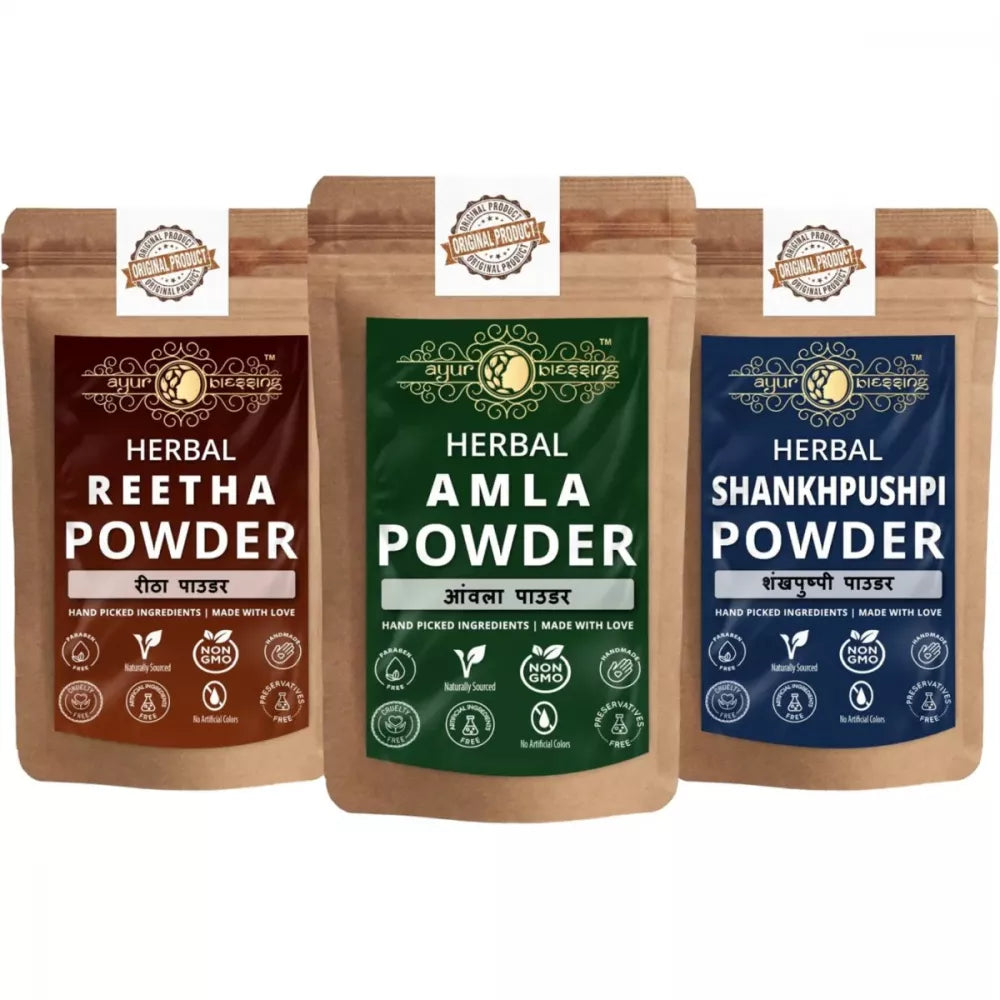 Ayur Blessing Herbal Amla & Reetha & Shankhpushpi Powder Combo