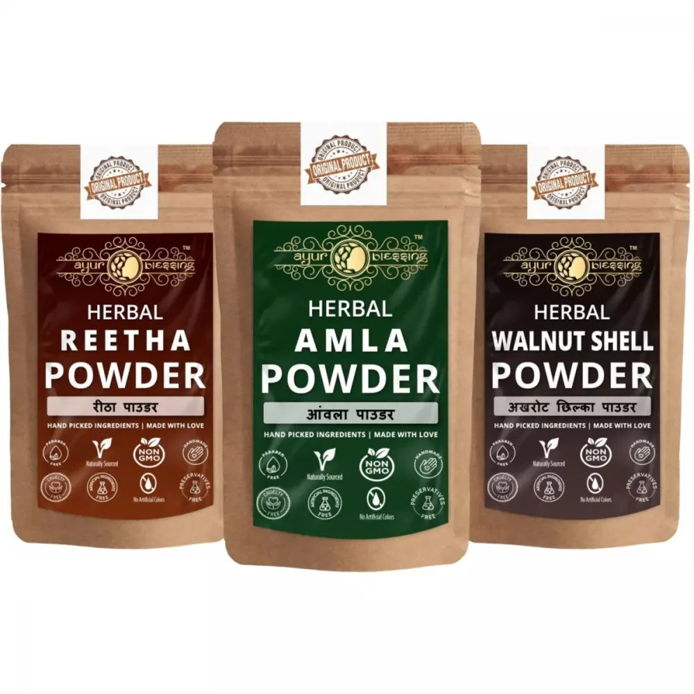 Ayur Blessing Herbal Amla & Reetha & Walnut Shell Powder Combo