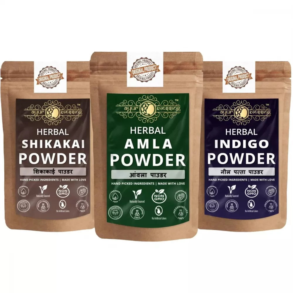 Ayur Blessing Herbal Amla & Shikakai & Indigo Powder Combo
