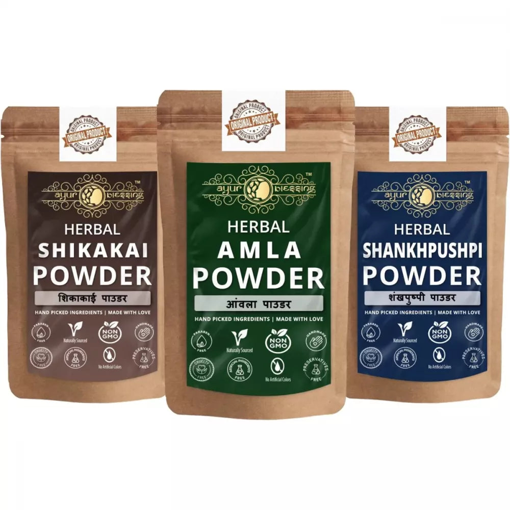 Ayur Blessing Herbal Amla & Shikakai & Shankhpushpi Powder Combo