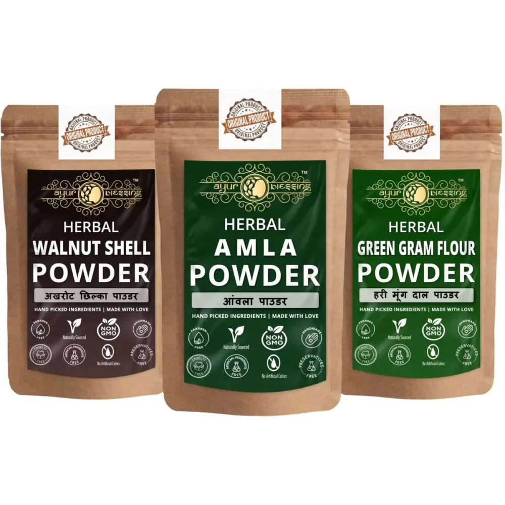 Ayur Blessing Herbal Amla & Walnut Shell & Green Gram Flour Powder Combo