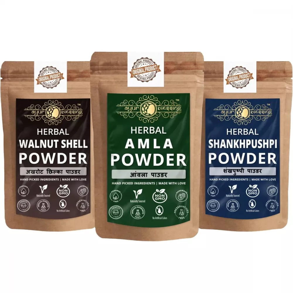 Ayur Blessing Herbal Amla & Walnut Shell & Shankhpushpi Powder Combo
