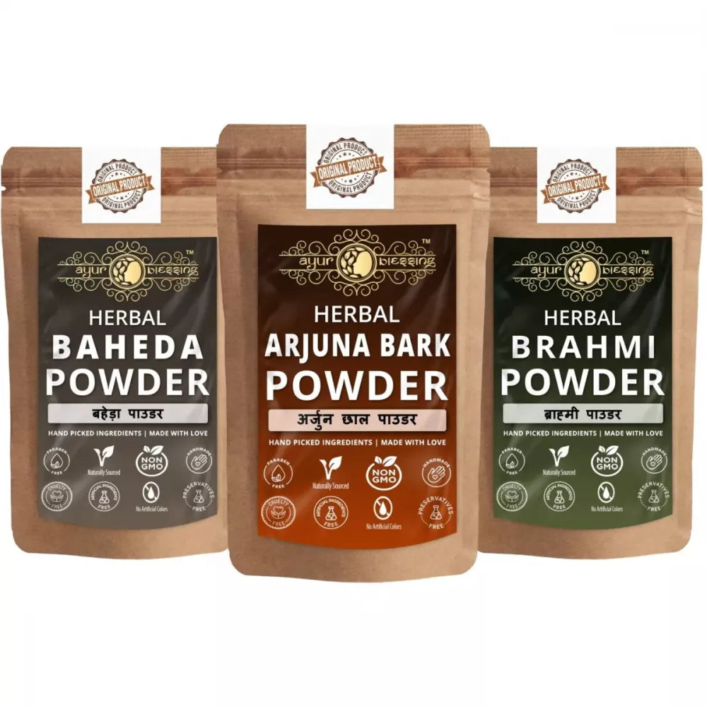 Ayur Blessing Herbal Arjuna Bark & Baheda & Brahmi Powder Combo