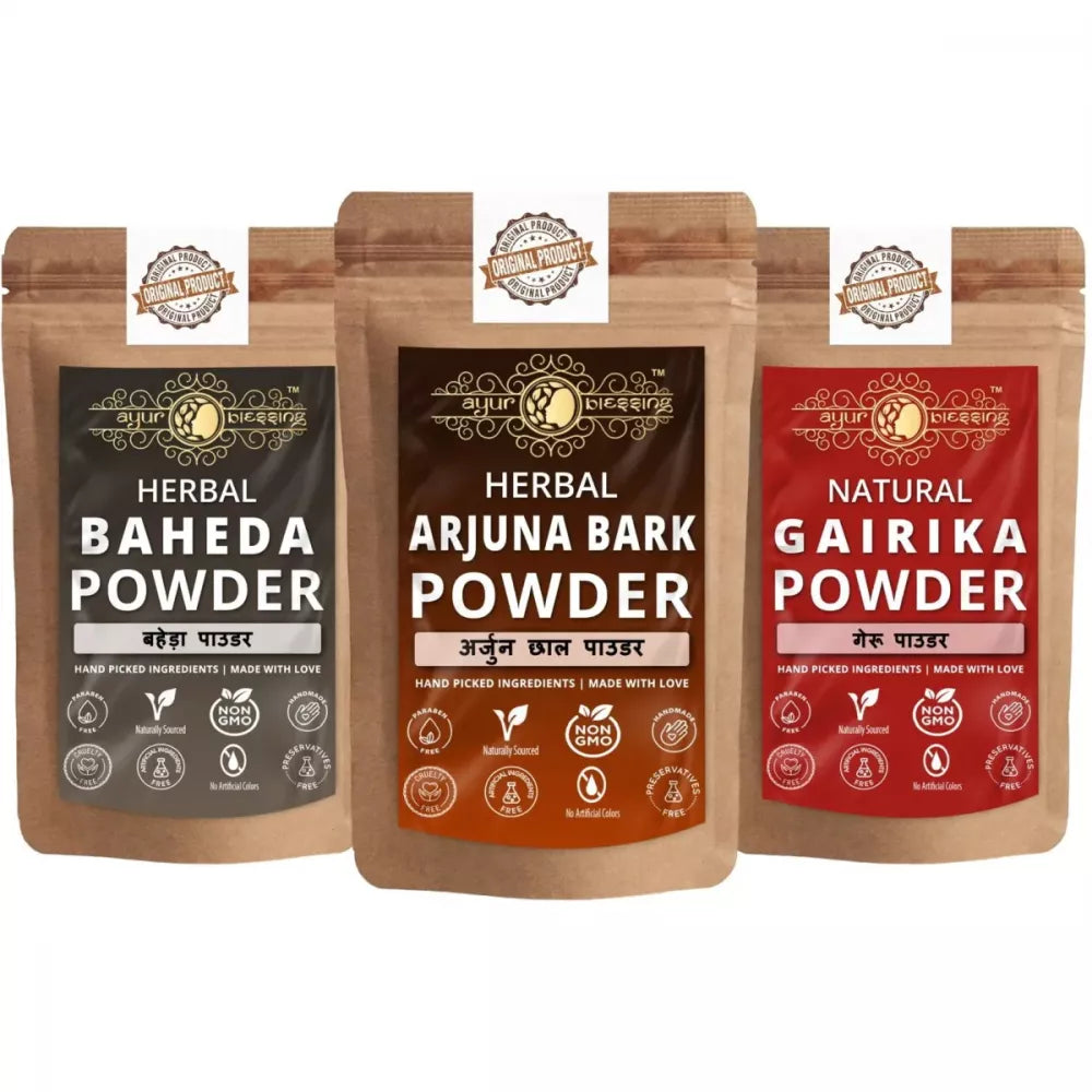 Ayur Blessing Herbal Arjuna Bark & Baheda & Gairika Powder Combo