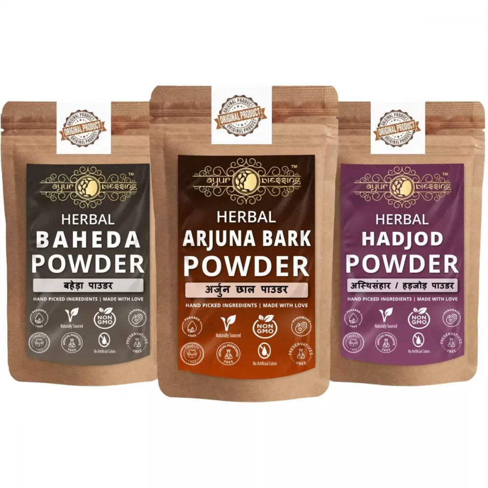 Ayur Blessing Herbal Arjuna Bark & Baheda & Hadjod Powder Combo