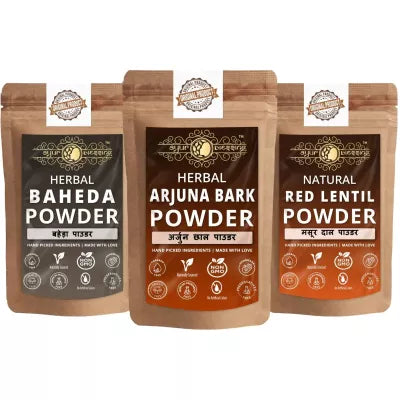 Ayur Blessing Herbal Arjuna Bark & Baheda & Red Lentil Powder Combo