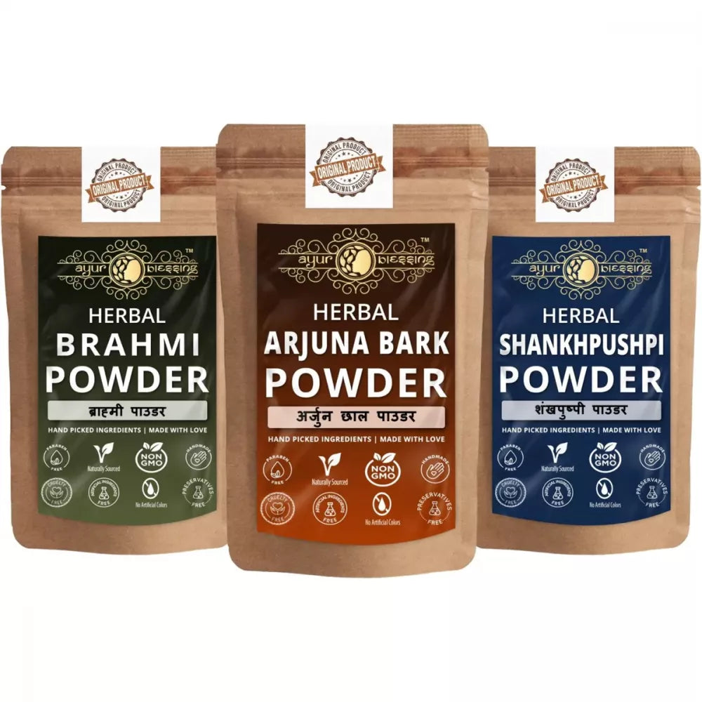 Ayur Blessing Herbal Arjuna Bark & Brahmi & Shankhpushpi Powder Combo