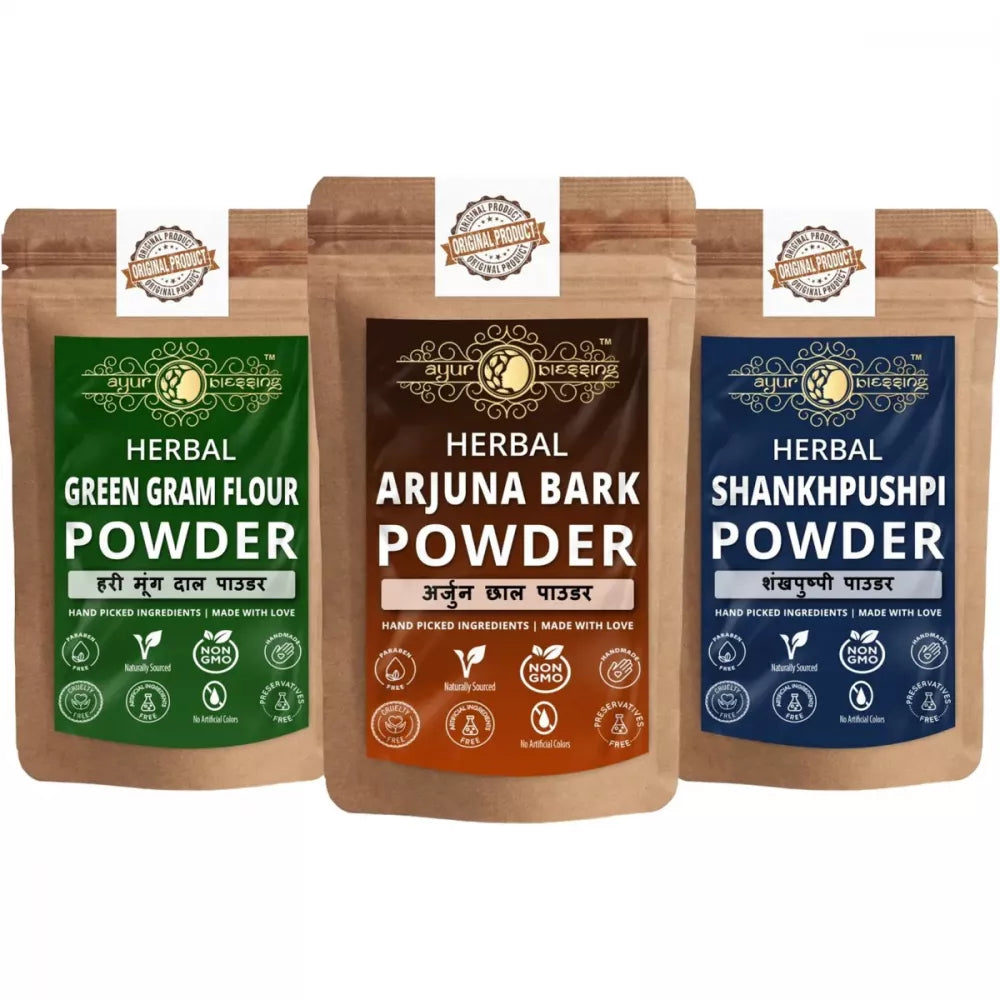 Ayur Blessing Herbal Arjuna Bark & Green Gram Flour & Shankhpushpi Powder Combo