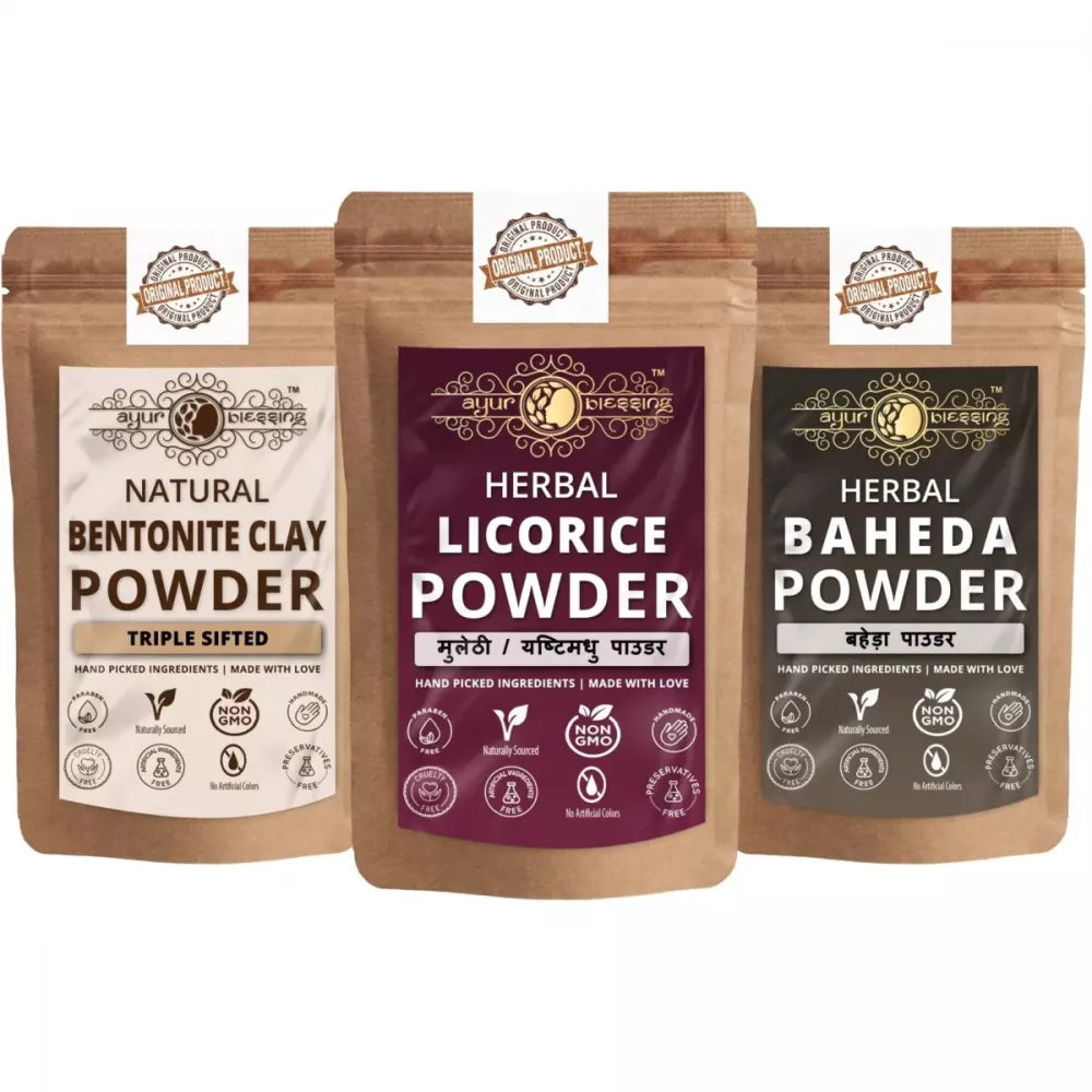Ayur Blessing Natural Bentonite Clay & Licorice & Baheda Powder Combo