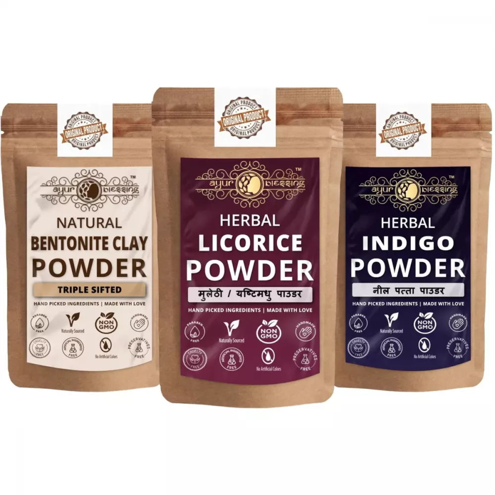 Ayur Blessing Natural Bentonite Clay & Licorice & Indigo Powder Combo