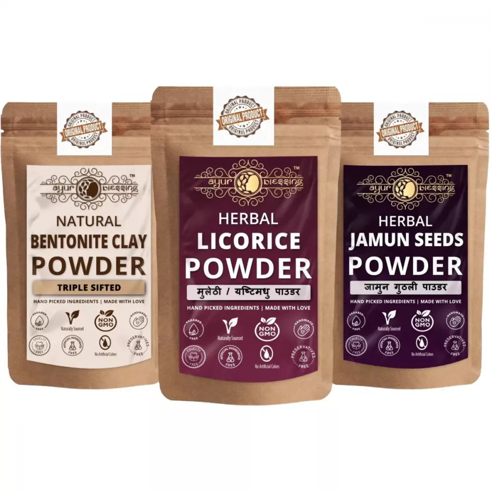 Ayur Blessing Natural Bentonite Clay & Licorice & Jamun Seeds Powder Combo