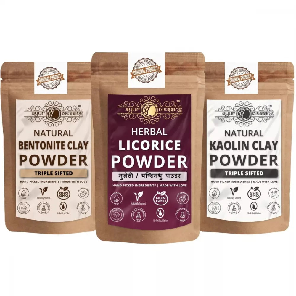 Ayur Blessing Natural Bentonite Clay & Licorice & Kaolin Clay Powder Combo