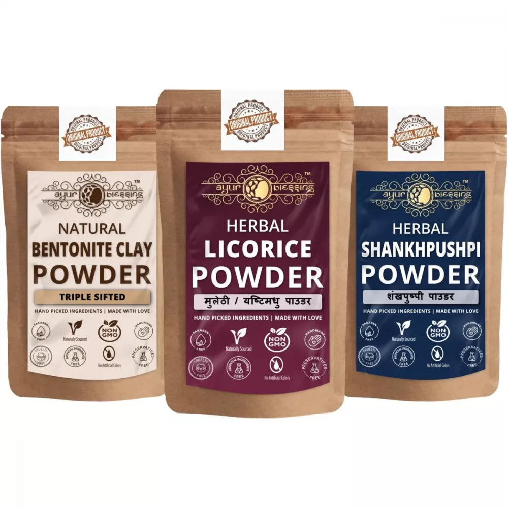 Ayur Blessing Natural Bentonite Clay & Licorice & Shankhpushpi Powder Combo
