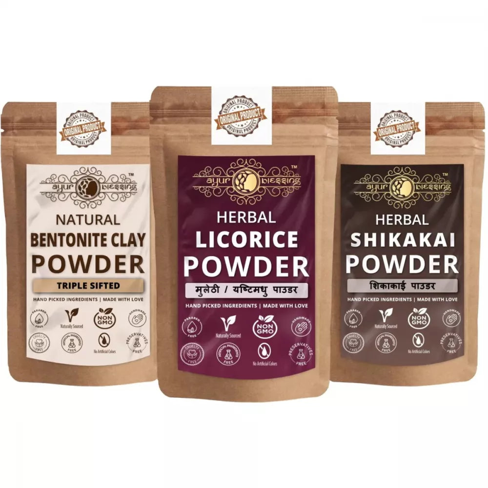 Ayur Blessing Natural Bentonite Clay & Licorice & Shikakai Powder Combo