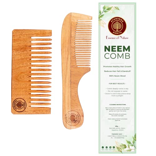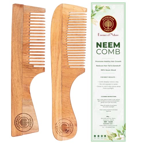 Ayurveda Amrita Organic Short Detangle & Rounded Detangle Neem Wood Comb | Helps in Dandruff Removal