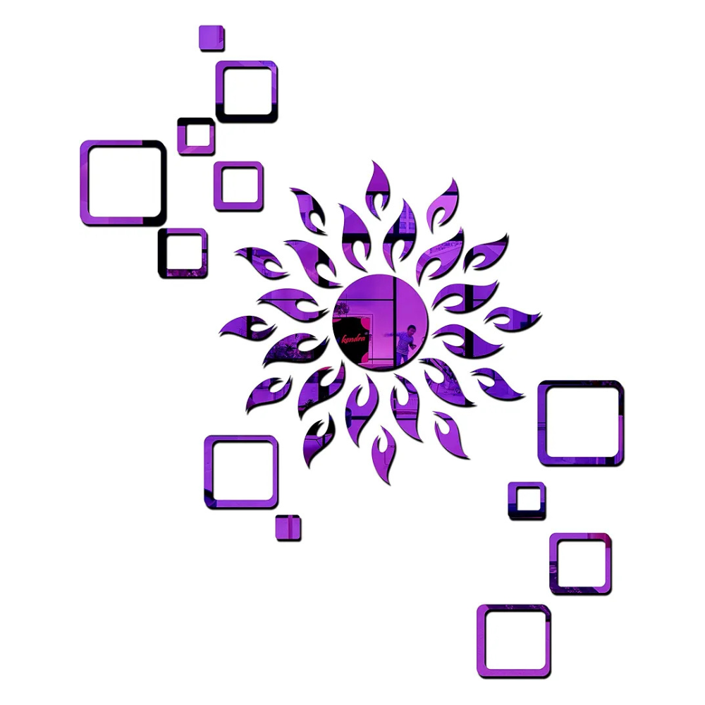 Bikri Kendra Art BK113, Sun Purple with Square Purple 2 Set 3D Acrylic Mirror Stickers for Wall