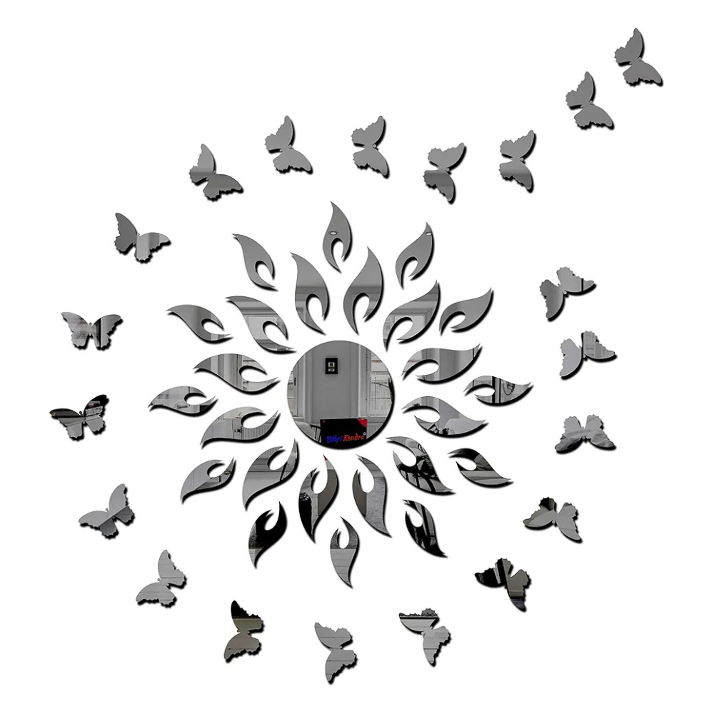Bikri Kendra Art BK64 Sun Silver with Butterfly Silver 20-3D Acrylic Mirror Stickers for Wall