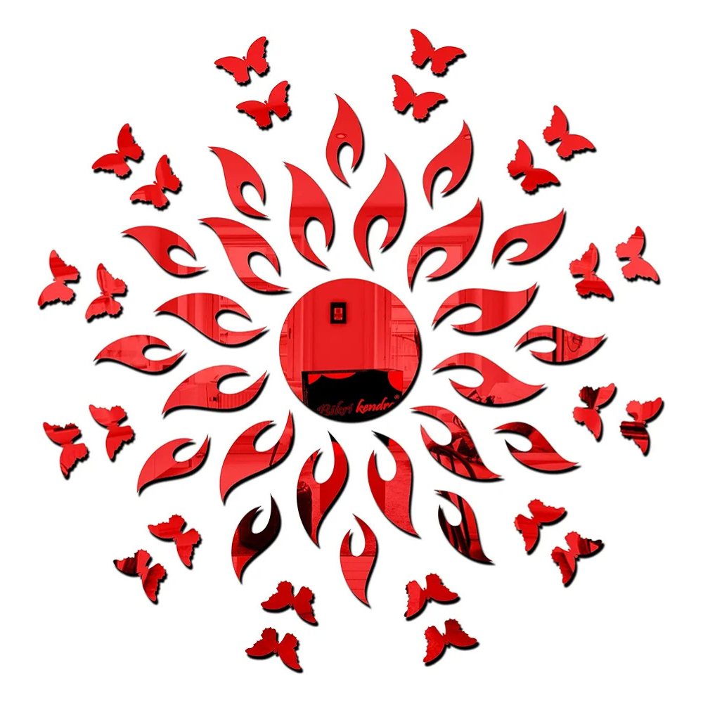 Bikri Kendra Art BK162, Sun red with 20 red Butterfly - 3D Acrylic Mirror Stickers for Wall