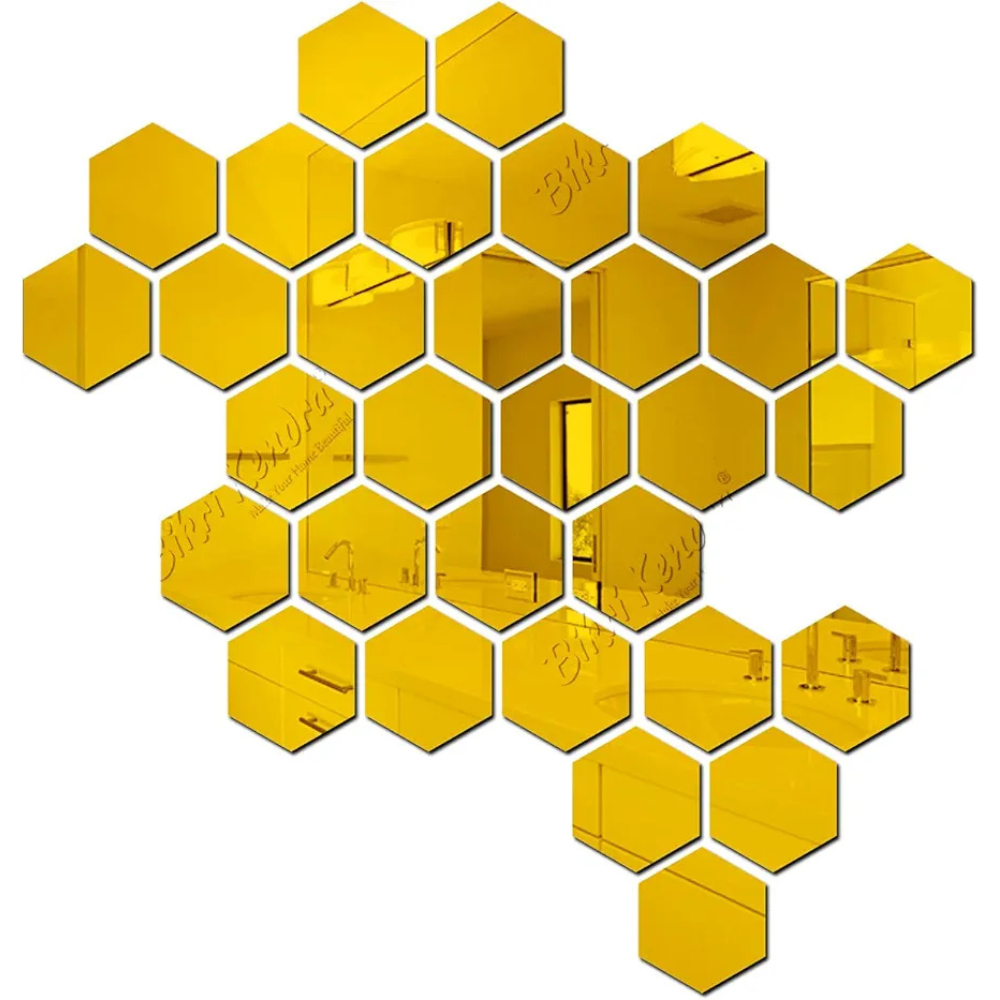 Bikri Kendra 32 Hexagon with 20 Butterfly Golden Stickers for Wall Hexagon Mirror Acrylic Mirror