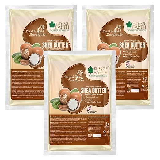 Bliss of Earth Organic Ivory Shea Butter For Skin Raw & Unrefined - 200 gms Each (Pack of 3)