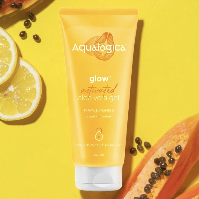 - It's the time for Glow O'Clock! Crafted with a mix of ingredients like Papaya, Vitamin C, Hyaluronic Acid, and Pure Aloe Vera, the new Aqualogica Glow+ Activated Aloe Vera Gel hydrates your skin and adds a glow to it.