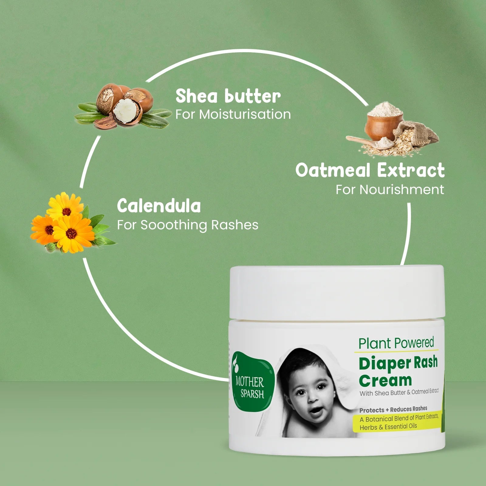 - Mother Sparsh Plant Powered Diaper Rash Cream is formulated with natural ingredients like Calendula Oil and organic Shea butter which is well known for its skin healing abilities.