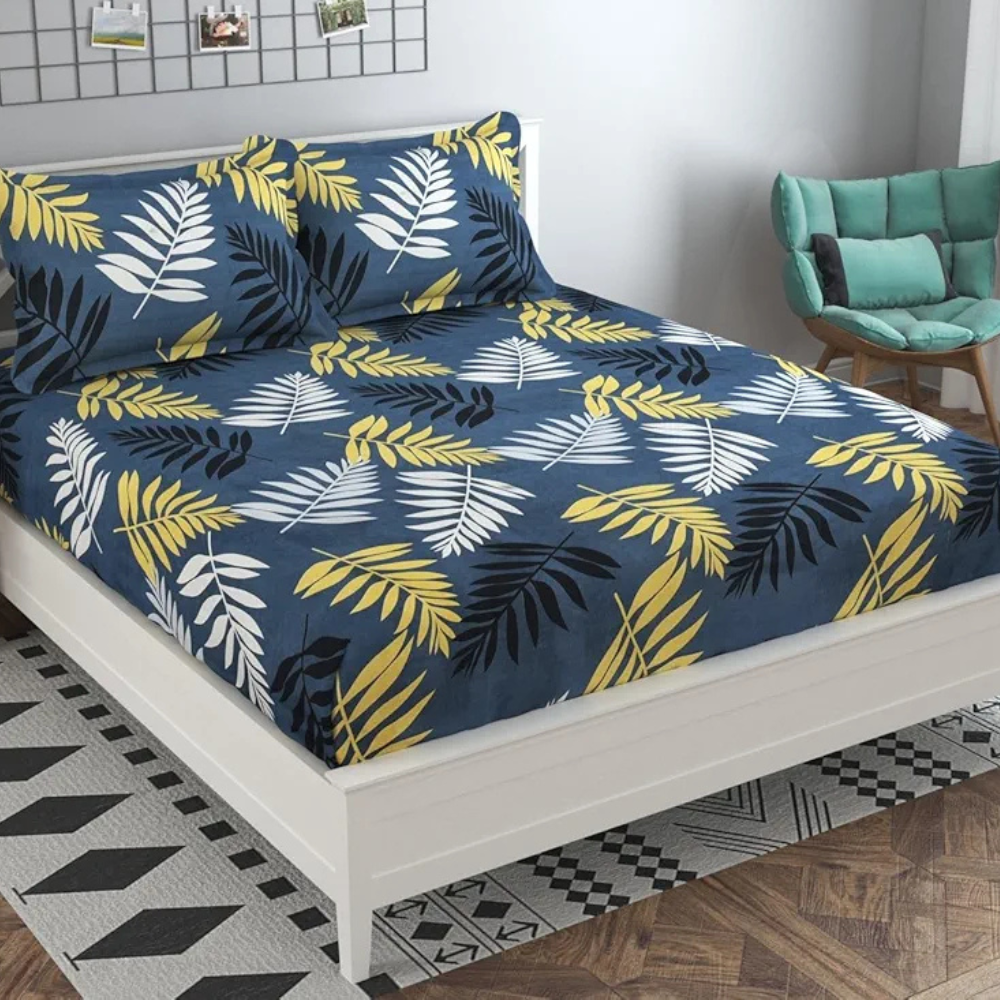 HomeKart Microfiber bedsheet for Double Bed with 2 Pillow Covers Breathable and Soft Touch 144 TC Pattren Floral Grey and Mustarded TC - 144