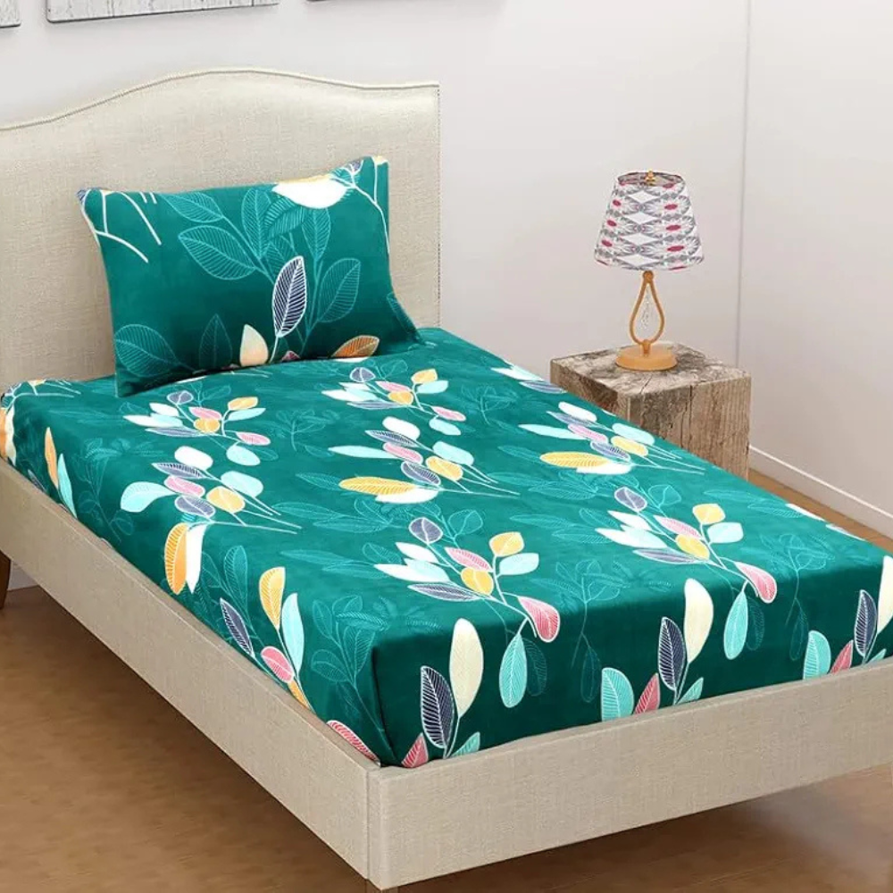 HomeKart Microfiber 160 TC Flat Single Bedsheets for Summer Breathable Wrinklefree with 1 Pillow Covers Dark Green
