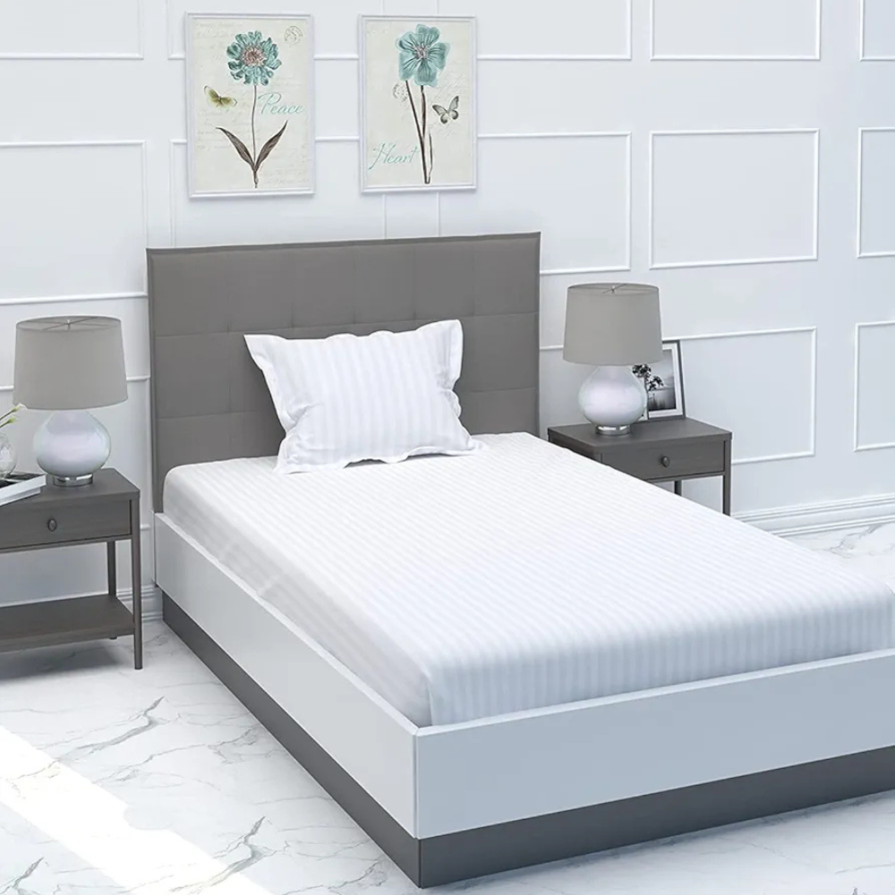 Purav Light Microfiber Flat Single Bed Bedsheet Plain Striped Cotton Bedsheet with 1 Pillow Cover for Queen Size Bed 340 TC Breathable White Color