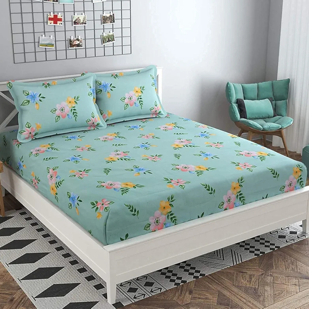 The Home Style Supersoft Cotton King Size Printed Flat Double Bedsheet with 2 Pillow Cover 300 TC Pista Green