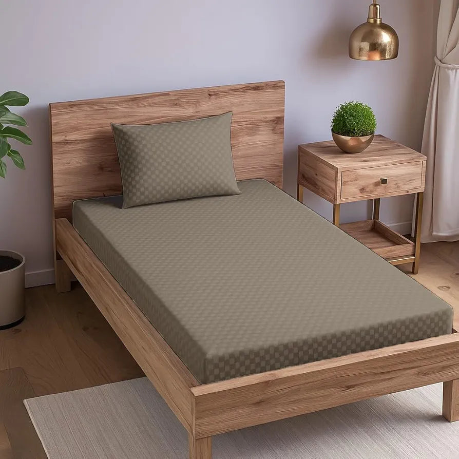 Trance Home Linen Skin Friendly Premium Jacquard Weave Fitted Bedsheet for Single Bed with 1 Pillow Cover 100% Cotton300TC Colour Mocha