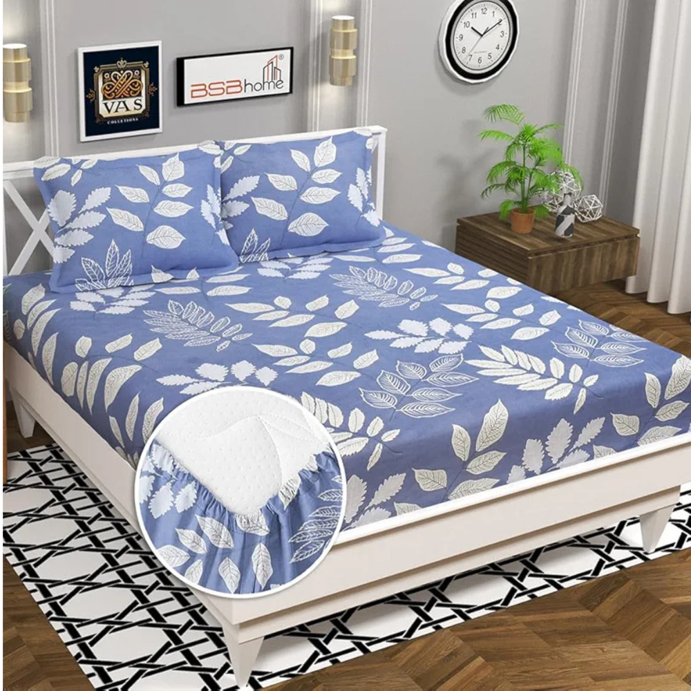 Homekart Premium Cotton 160tc Elastic Fitted Bedsheets with 2 Pillow Covers Double Bed Sky Blue & White