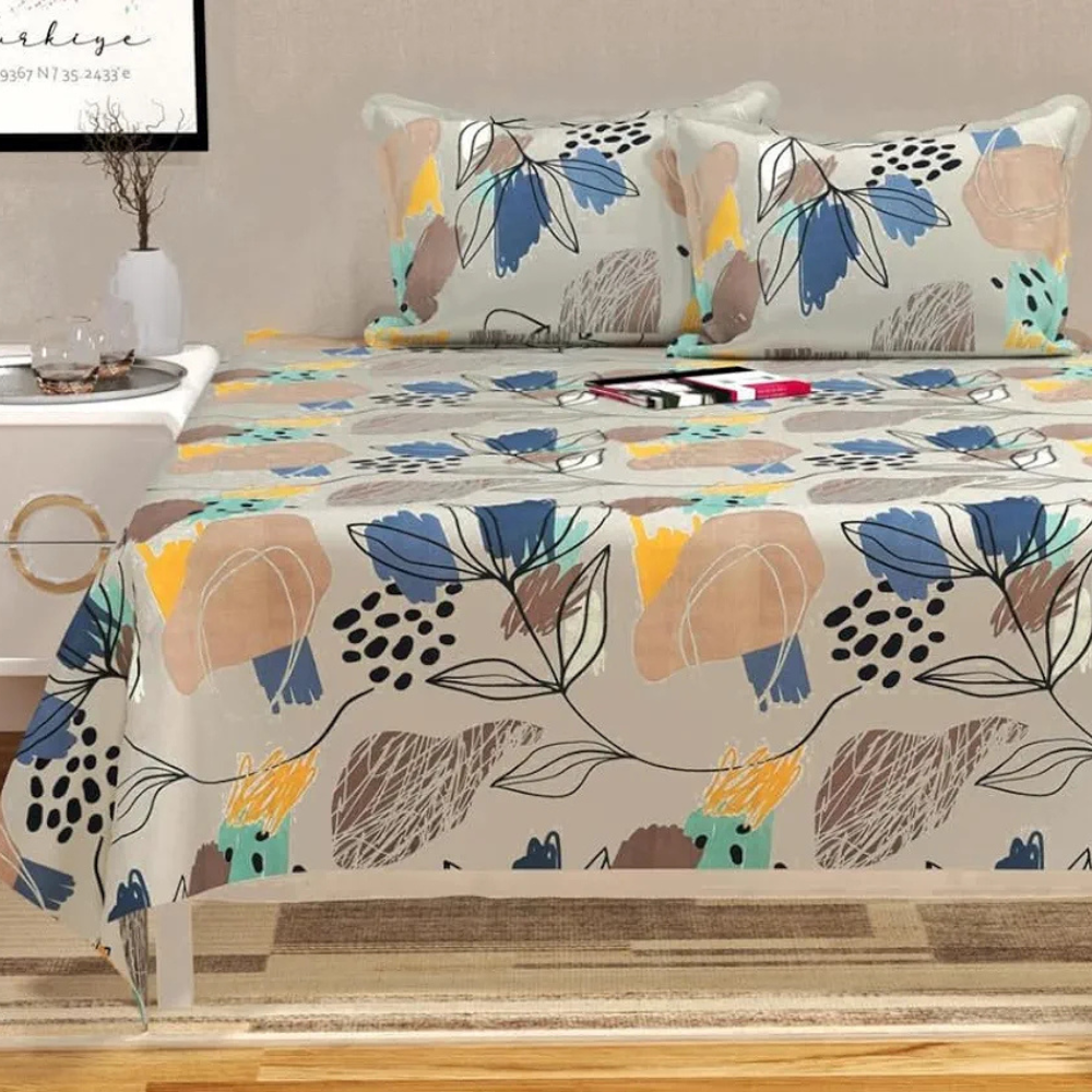 HomeKart Floral Printed Cotton Feel Double Bedsheet with 2 Pillow Covers 200 Tc Soft Premium Printed Bedsheet for Home Bedroom Grey & Blue