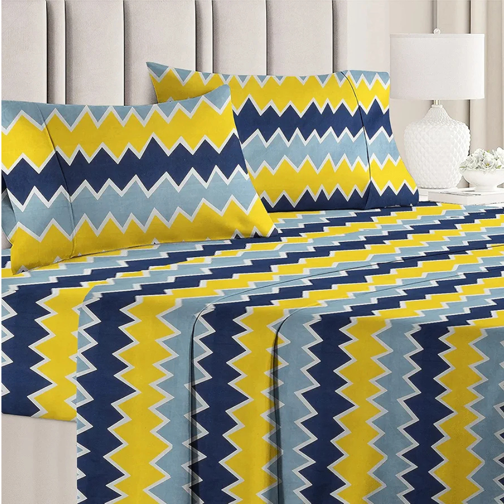 HomeKart Microfiber bedsheet for Double Bed with 2 Pillow Covers Breathable and Soft Touch 144 TC Pattren Zigzag Yellow and Grey TC 144