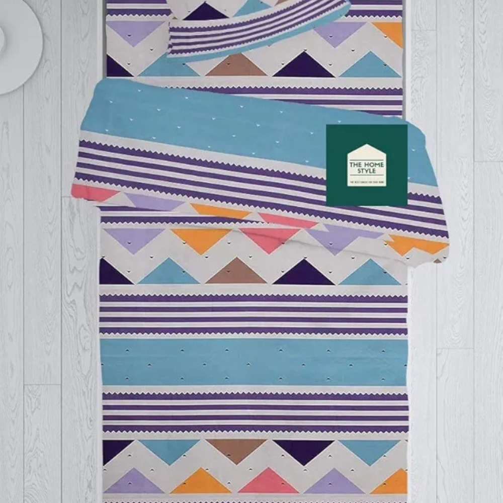 The Home Style Cotton Feel Glace Cotton Elastic Single Bed Bedsheet with 1 Pillow Cover Pastel Palette