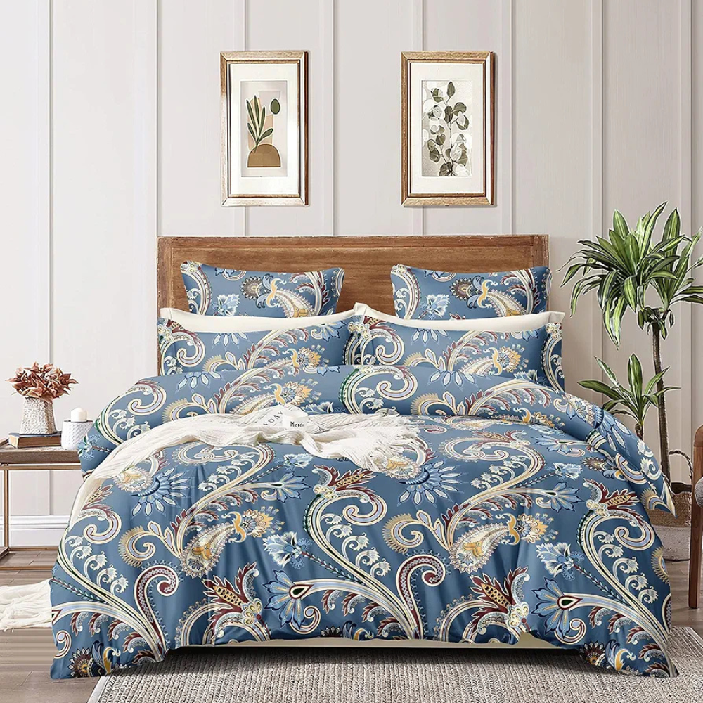 The Home Style Cotton Feel Glace Cotton All Around Elastic Fitted Printed Queen Size Double Bed Bedsheet With 2 Pillow Cover 300 TC Blue Berry