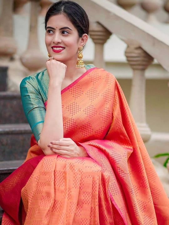 • The blouse worn by the model might be for modelling purpose only. Check the image of the blouse piece to understand how the actual blouse piece looks like.