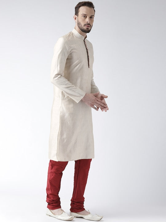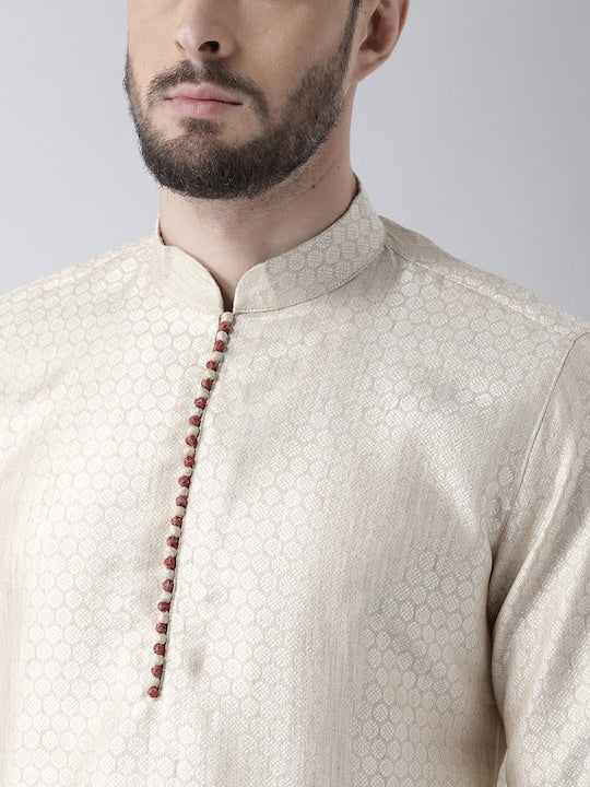 Deyann Men Cream-Coloured Woven Design Straight Kurta