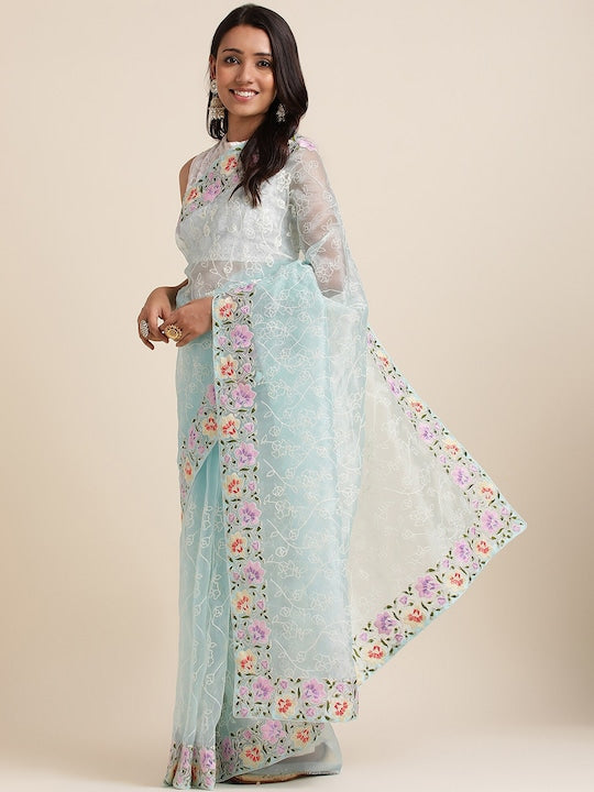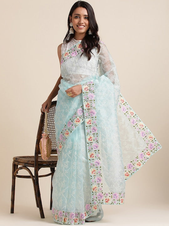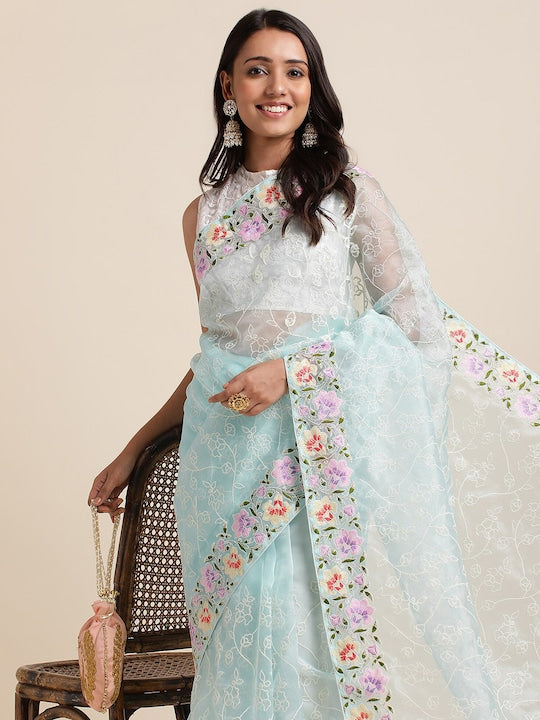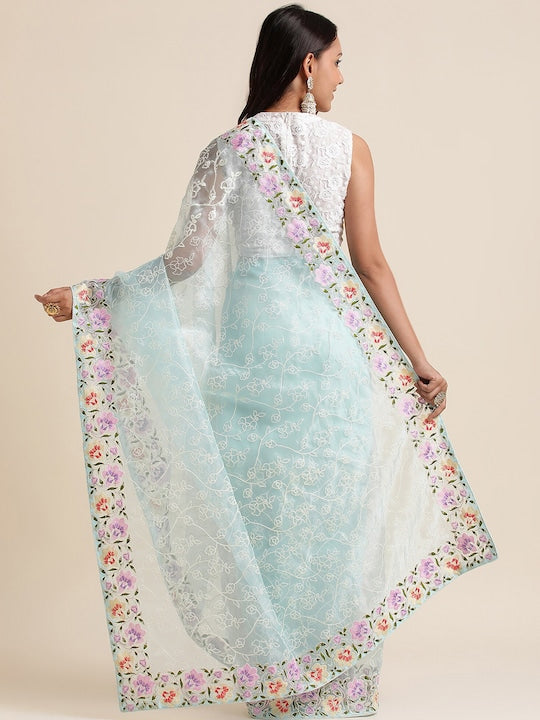 Fabmora Ethnic Motifs Embroidered Organza Saree