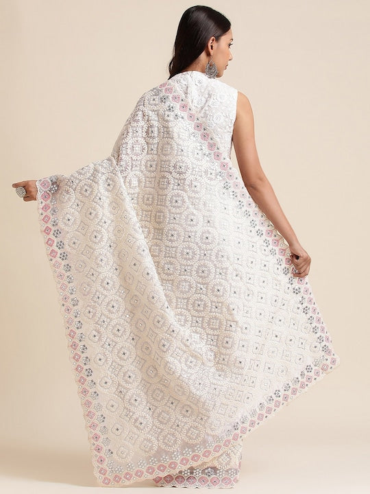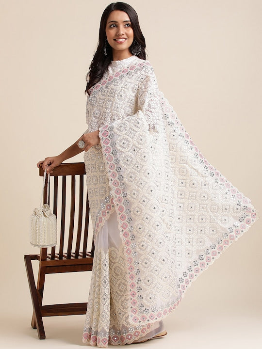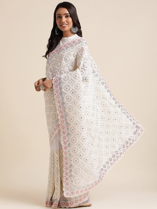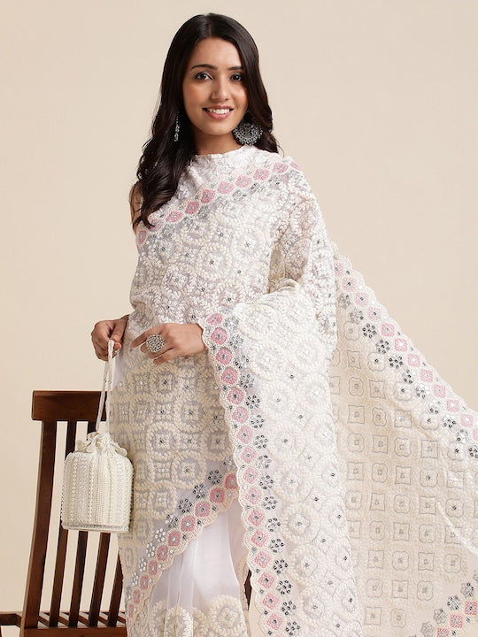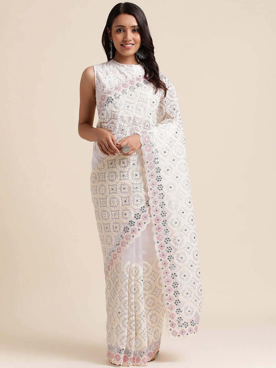 Fabmora Ethnic Motifs Embroidered Organza Saree