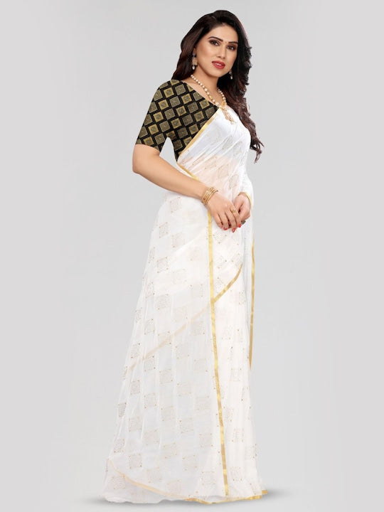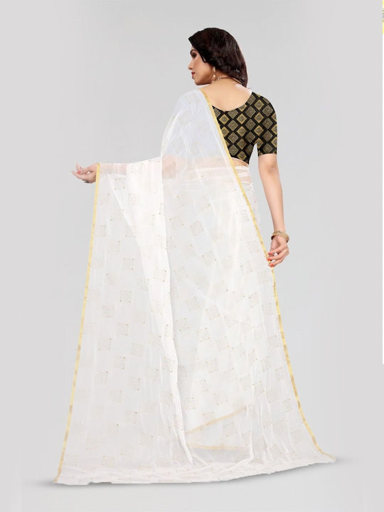 • The saree comes with an unstitched blouse piece. The blouse worn by the model might be for modelling purposes only. Check the image of the blouse piece to understand how the actual blouse piece looks.
