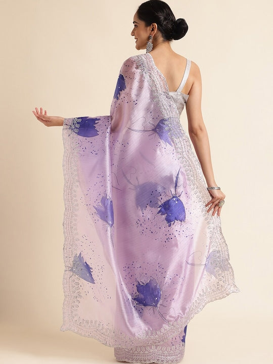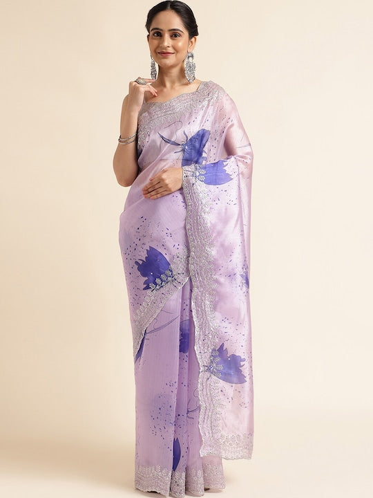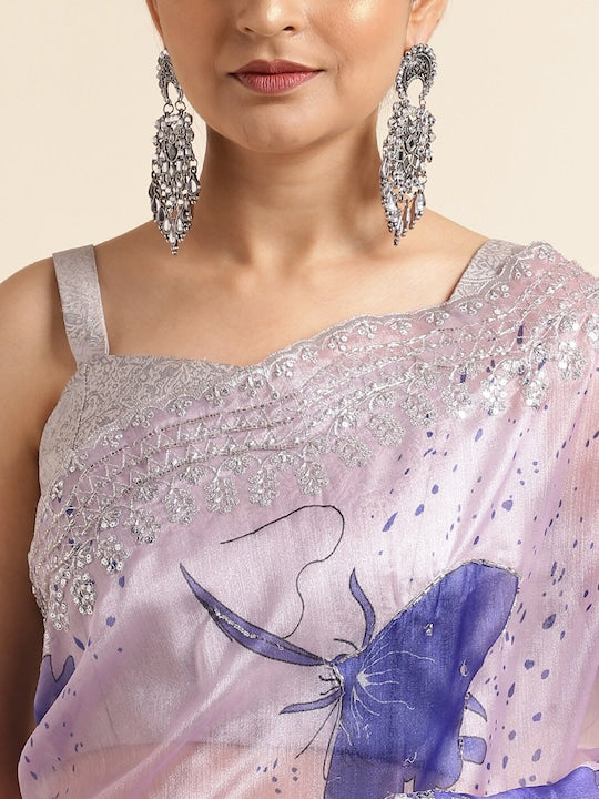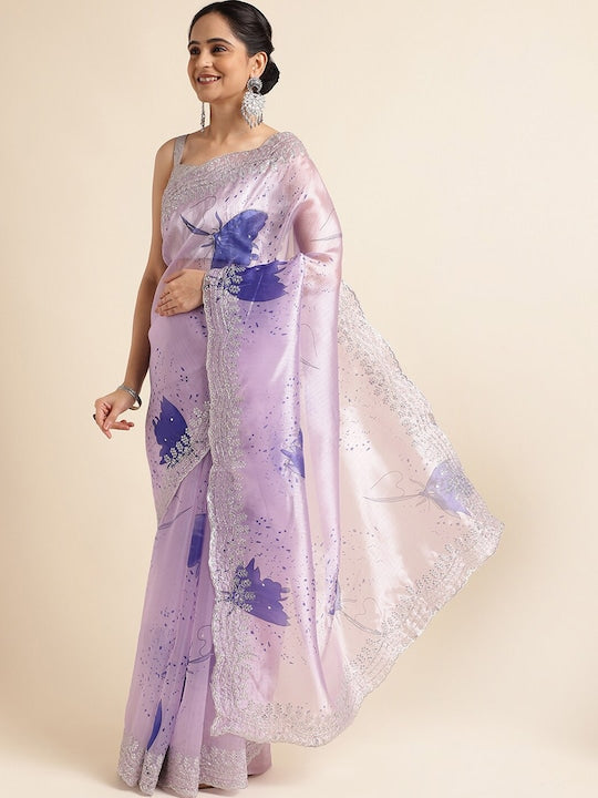 Fabmora Ethnic Motifs Sequinned Organza Saree