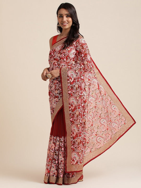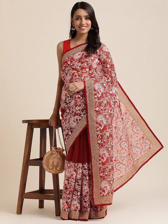 • The blouse worn by the model might be for modelling purpose only. Check the image of the blouse piece to understand how the actual blouse piece looks like.