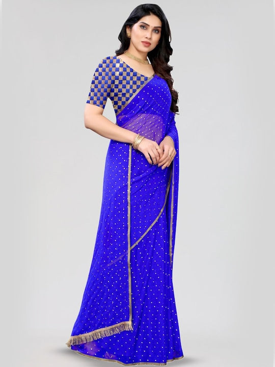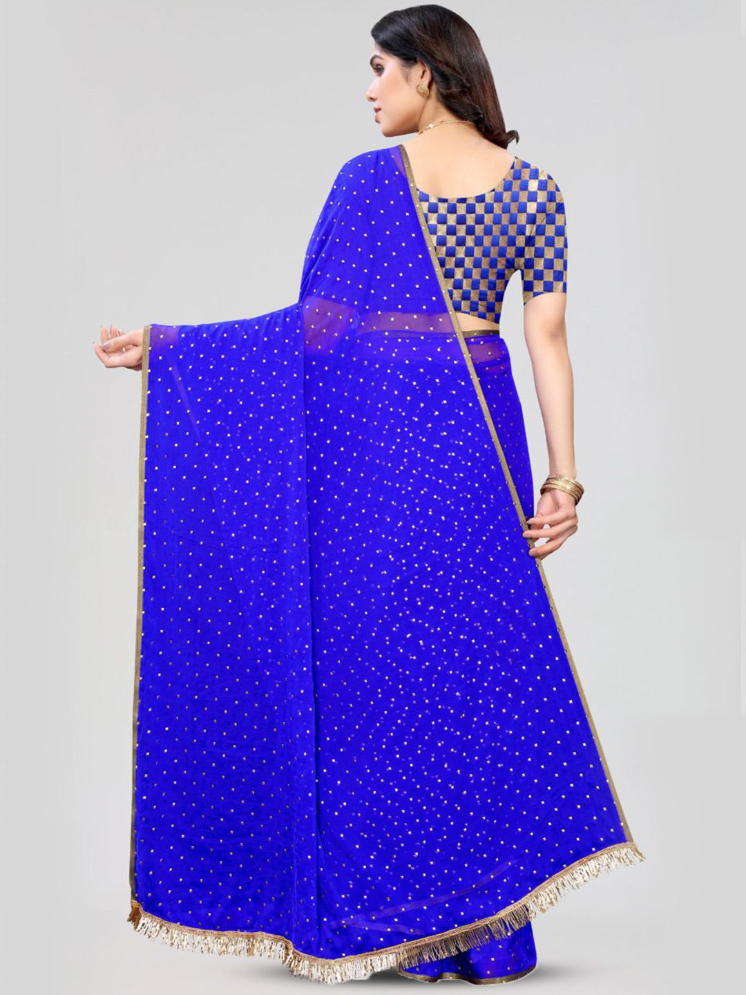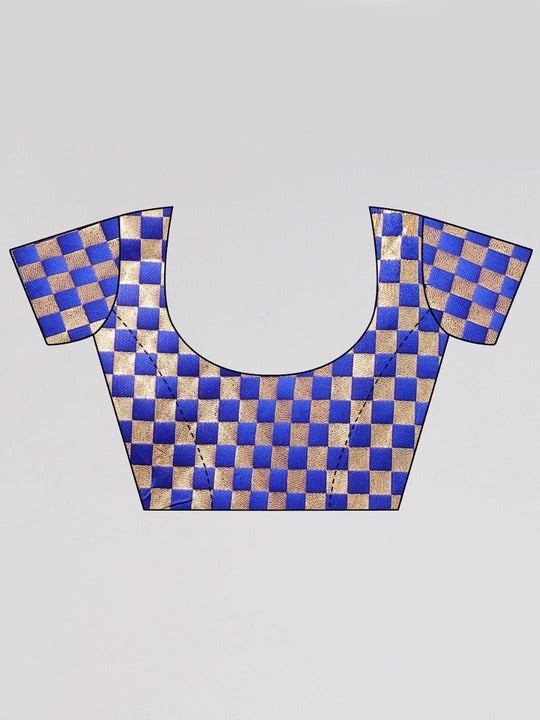 • Blue and gold-toned saree