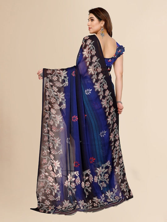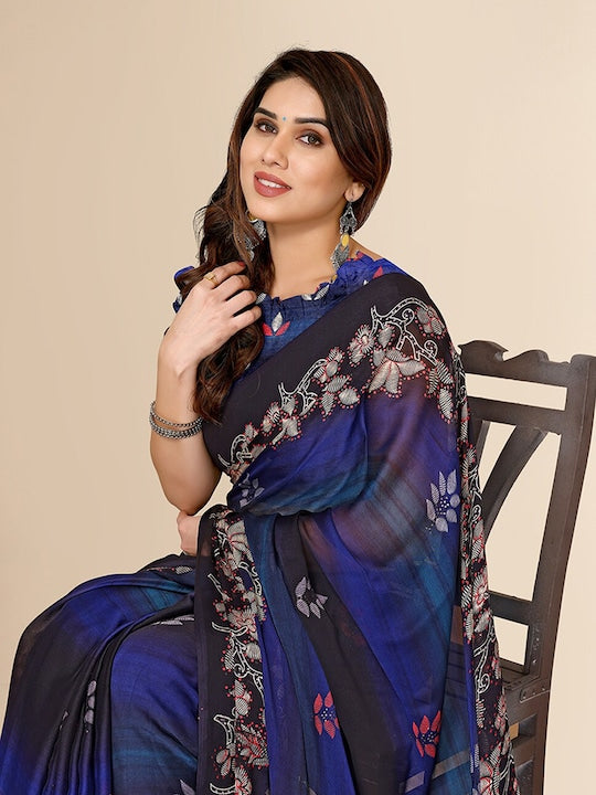 Fabmora Printed Poly Chiffon Saree